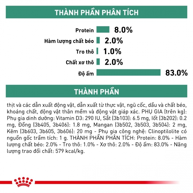 Bảng thành phần phân tích sản phẩm ROYAL CANIN Satiety Canin Wet - Hỗ trợ chó giảm cân (Ảnh: www.cityzoo.vn)